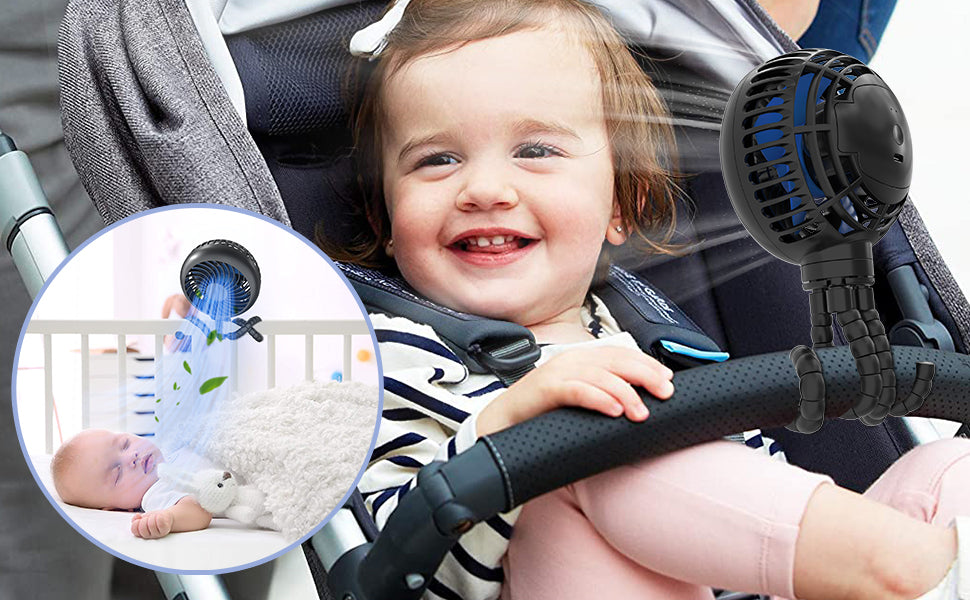 FlexiCool 360° Portable Fan – Rechargeable with Adjustable Tripod for Car Seats, Strollers, Cribs, and More